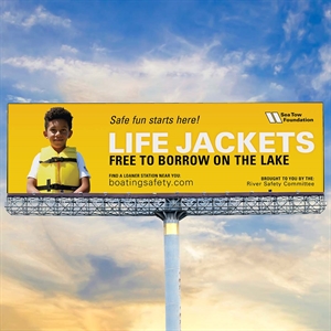GEORGIA - Spreading awareness about the Life Jacket Loaner Program using a digital billboard on a busy Columbus, GA road will save lives. Safety around the water is the focus of the River Safety Committee comprised of many public/private community partners collaborating to eliminate drownings and water related incidents in Columbus GA. With support from the Sea Tow Foundation and Academy Sports + Outdoors, the River Safety Committee manages 7 life jacket loaner stations along the Georgia and Alabama line, keeping residents and visitors to the region safe on the water. SafeKids Columbus Posted October 4, 2022 Would your group like to place a billboard in your region? We can provide the custom artwork you need for free. Reach out to info@boatingsafety.com! Help spread awareness about boating safety!