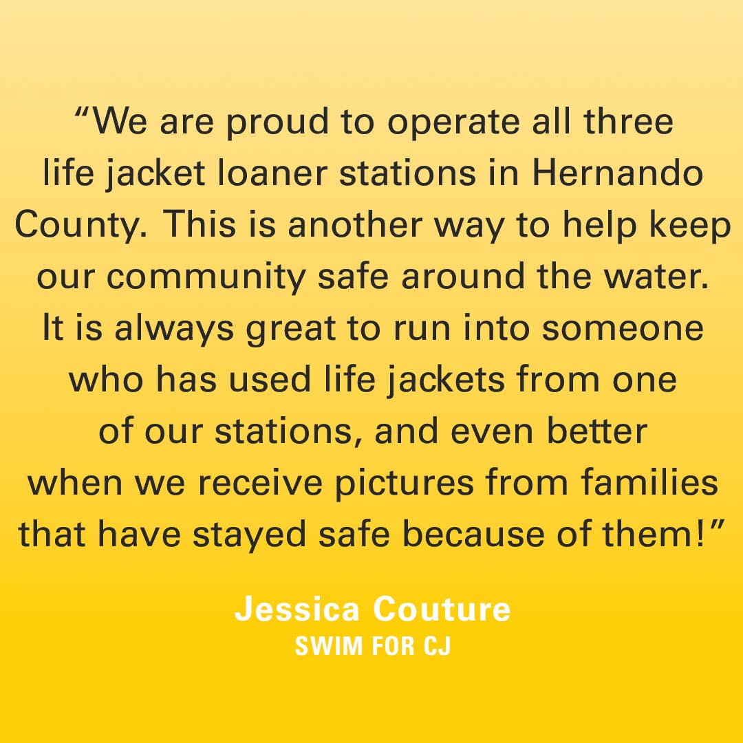 FLORIDA - An accidental drowning tragedy was the catalyst that started Swim for CJ which raises awareness for water safety and drowning prevention. Hosting 3 loaner stations at boat ramps in Hernando County continues their mission to keep kids safe when on and around water.