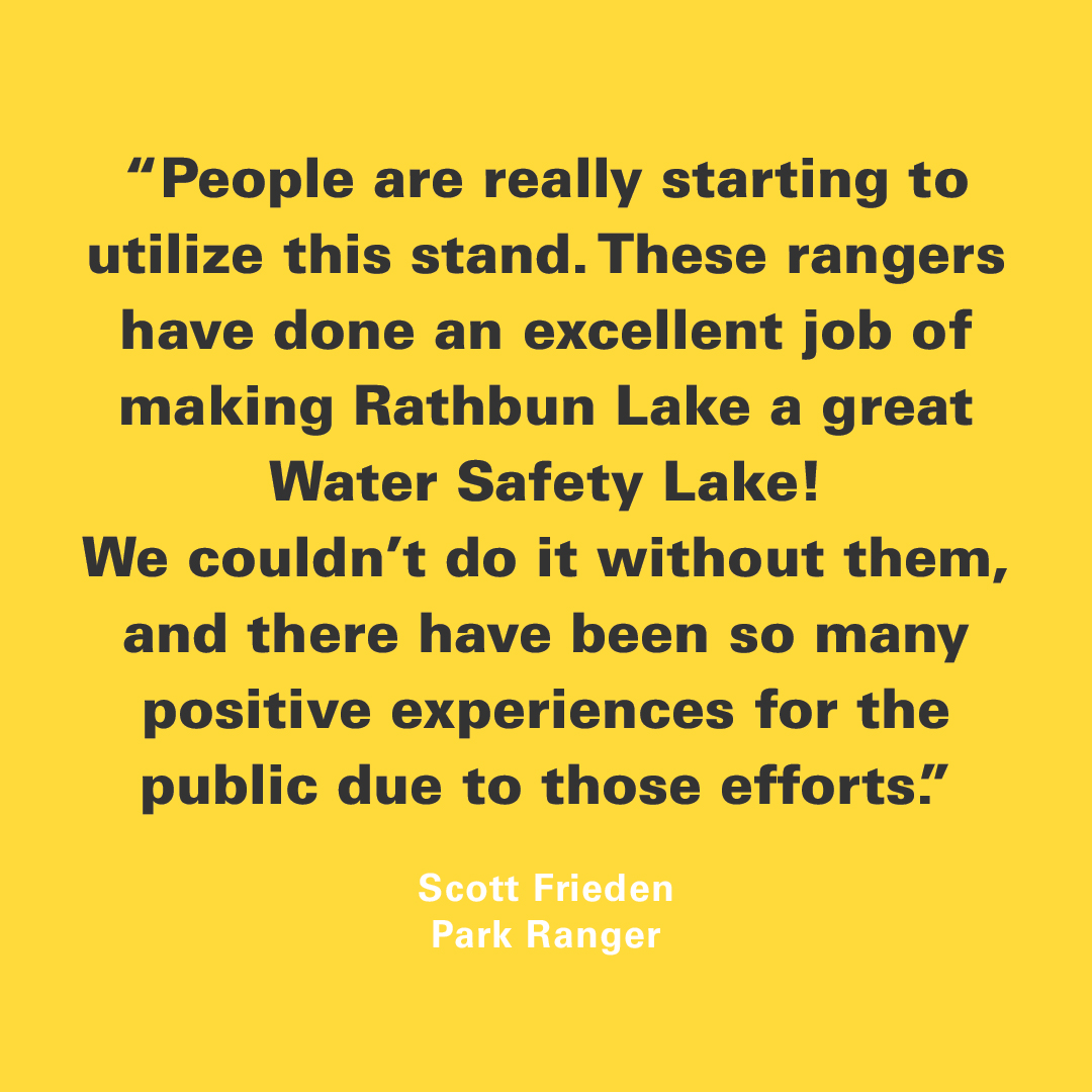 IOWA - The staff from U.S. Army Corp of Engineers – Rathbun Lake in Centerville, Iowa is pictured next to their new loaner stand. They are well-deserved Sea Tow Foundation grant winners who are always promoting water safety with their 2 life jacket loaner stations!